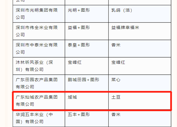 廣東燦城農(nóng)產(chǎn)品集團有限公司上榜入選2個產(chǎn)品!